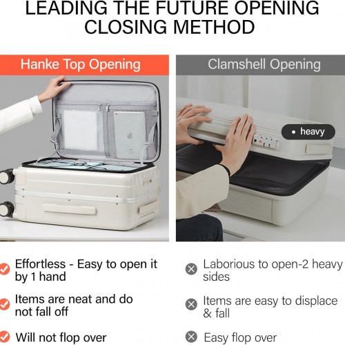 Hanke 24 Inch Checked Luggage PC Hard Case Luggage Top Opening Aluminum Frame Travel Luggage Suitcases with Wheels for Woman Men.(Ivory white)
