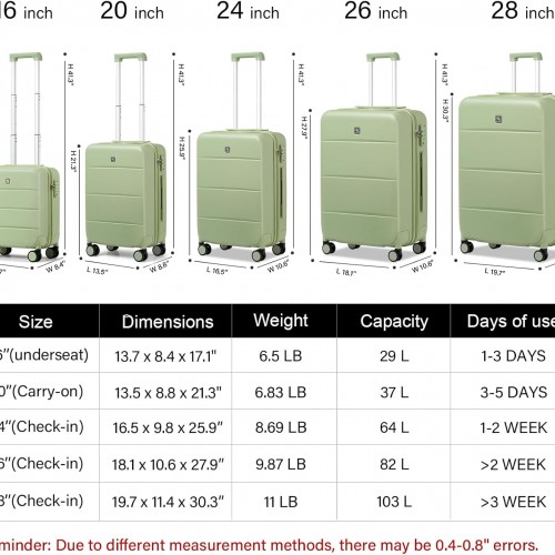 Hanke 28 Inch Luggage with Spinner Wheels Large Travel Suitcase Tsa Hard Case Luggage for Women Men Rolling Checked Luggages(Bamboo Green)