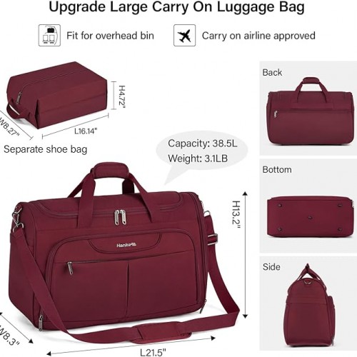 - 【Airplane Carry On Bag】It’s a large duffle bags with 38.5L,Beyond functioning as a practical carry on duffel bag, it also works perfectly as a weekend bag,overnight bag or cabin bags. It’s a nice travel bags for women and duffle bag for men .Whether you’re traveling for business or pleasure, it’s an ideal travel companion