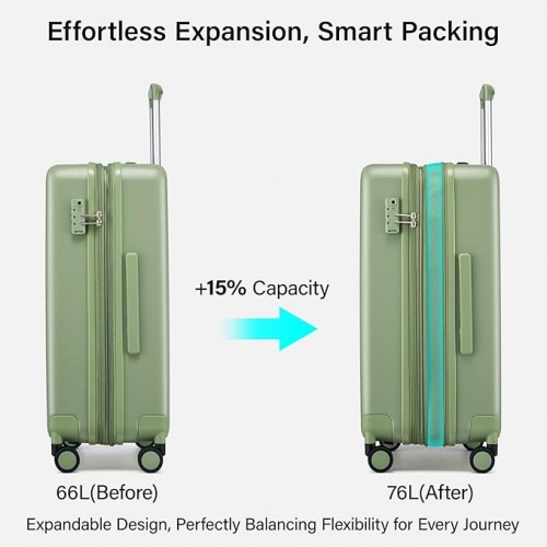 Hanke Expandable 24 Inch Luggage with Spinner Wheels, Hardside Medium Checked luggage, All-PC Hard Shell Suitcase, TSA Lock, Lightweight Checked-Medium (Bamboo Green, 76L)
