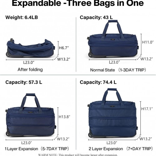 Hanke Expandable Carry On Luggage Suitcases with Wheels Foldable Duffle Bag for Travel Carry On suitcase Weekend Bag for Women Men(Blue)