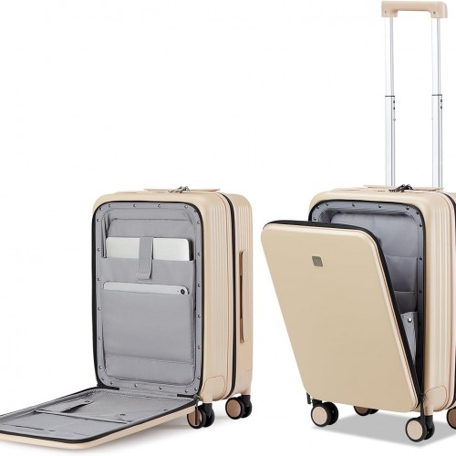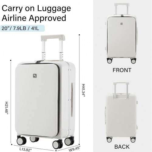 Hanke Grace Hard Shell Suitcases with Wheels,20 Inch Carry On Luggage Airline Approved with Aluminum Frame, Travel suitcase with Front Pocket Travel Luggage for Short Business Trips, Smoke White.