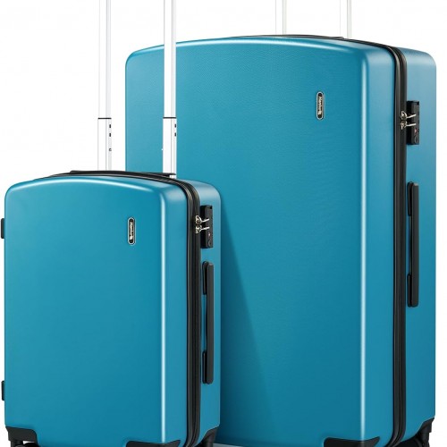 Hanke Hard Shell Luggage Sets 2 Pieces, Carry On and Checked Luggage Sets with Spinner Wheels, Durable PC Hardside Rolling Suitcase for Travel (20/28 Inch, Smoke White)