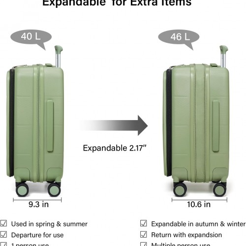 - Smart Expansion for 15% Extra Capacity: Unlock up to 6L additional packing space instantly. Our expandable design transforms this hard shell carry on luggage into a versatile traveler, letting you pack souvenirs or extra essentials effortlessly