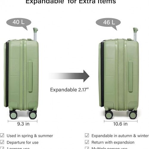 - Smart Expansion for 15% Extra Capacity: Unlock up to 6L additional packing space instantly. Our expandable design transforms this hard shell carry on luggage into a versatile traveler, letting you pack souvenirs or extra essentials effortlessly