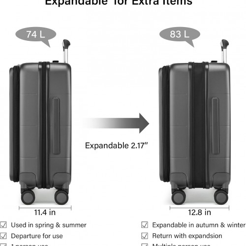 Hanke Hardside Expandable Checked Luggage, 24 Inch Top Opening Trunk Luggages with Spinner Wheels, All-PC Hard Shell Suitcase, Lightweight TSA Checked-Medium(Graphite Grey, 83L)