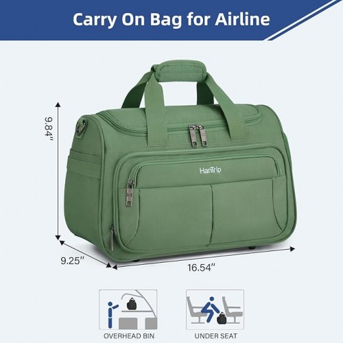 HanTrip Carry on Duffel Bag Foldable Duffle Bags for Travel, Under Seat Personal Item Bags for Airplanes, Weekender Overnight Mens Travel Tote Bag for Women Softside Carry on Luggage (Forest Green)