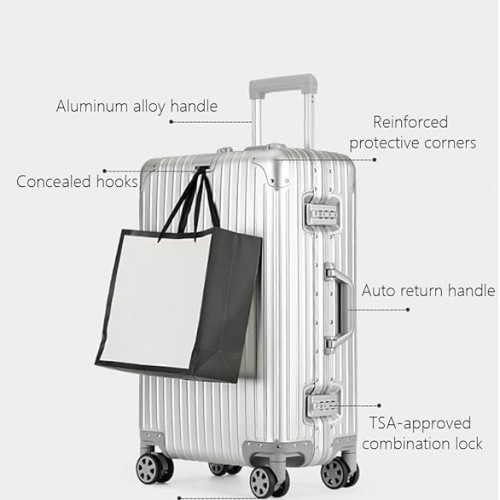 - PREMIUM ALUMINUM CONSTRUCTION: Crafted entirely from high-grade aluminum, including a durable aluminum handle and reinforced corners. This robust design offers superior protection against impacts and rough handling, ensuring your belongings remain secure throughout your travels.