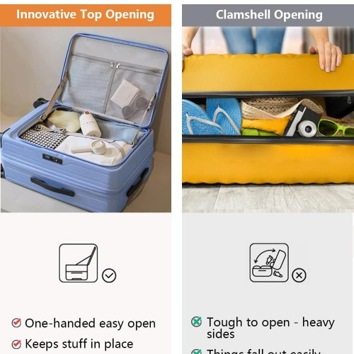HotWay 20 Inch Expandable Carry On Luggage with Cup Holder, Hardside TSA Approved Luggage with Spinner Wheels, Top Opening Suitcase For Travel, White
