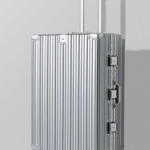 HotWay 24 Inch Aluminum Frame Luggage with Spinner Wheels, PC Hard Shell Suitcase with Cup Holder, Zipperless Luggage for Business Travel, Silver