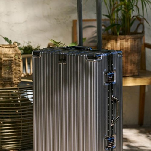 HotWay 26 Inch Aluminum Frame Luggage with Spinner Wheels, PC Hard Shell Suitcase with Cup Holder, Zipperless Luggage for Business Travel, Gray