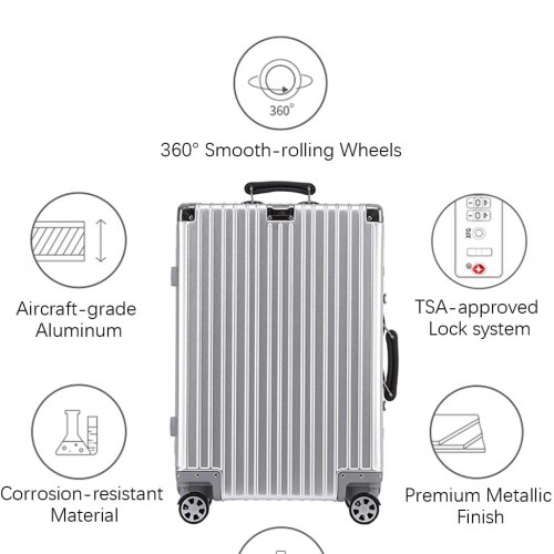 HotWay 28 Inch All Aluminum Checked in Luggage with Leather Handle, Hard Shell Zipperless Suitcase with TSA Locks and Spinner Wheels, Large Luggage for Business Travel, Blue