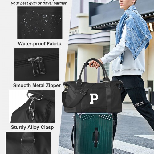 Initial Travel Duffel Bag Sports Gym Bag for Boys Teen Birthday Gifts,Black Personalized Weekender Bag Carry On Tote Bags for Men,Waterproof Overnight Luggage Bag Airplane Travel Essentials(Letter P)