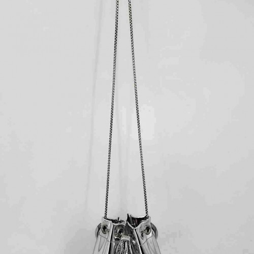 Bon Bon Silver Mirror Fabric Mini Bag with Metal Bracelet Handle $1075