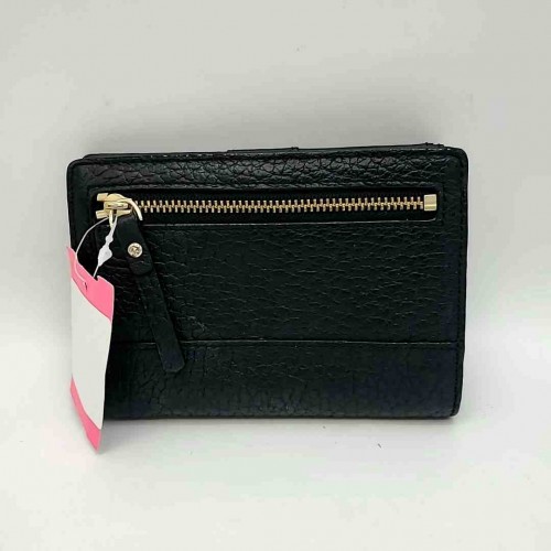 KATE SPADE Black Gold Leather Pre Loved Bifold 5.25″ 1″ 4″ Wallet