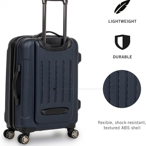 Kenneth Cole REACTION Renegade Luggage Expandable 8-Wheel Spinner Lightweight Hardside Suitcase, Navy Blue, 20-Inch Carry On