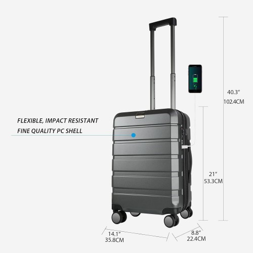 KROSER Hardside Expandable Carry On Luggage with Spinner Wheels & Built-in TSA Lock, Durable Suitcase Rolling Luggage with USB Port, Carry-On 20-Inch Steel Grey