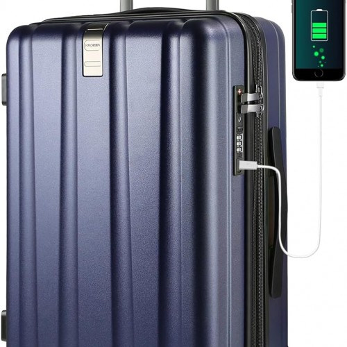 KROSER Hardside Expandable Carry On Luggage with Spinner Wheels & Built-in TSA Lock, Durable Suitcase Rolling Luggage with USB Port, Carry-On 20-Inch, Yellow