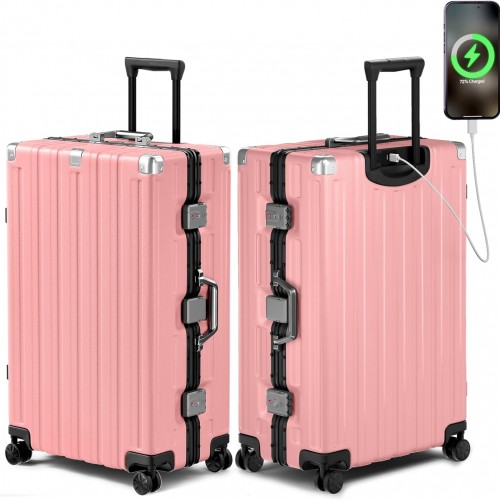 Krute Checked Aluminum Frame Suitcase 24 Inch Zipperless Luggages Hardside PC Luggage With Spinner Wheels TSA Lock USB Charger Suitcases(1 Piece)