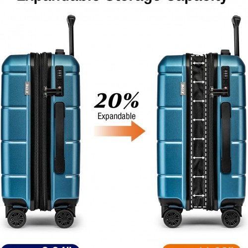 KYME Hardside Expandable Carry On Luggage 22x14x9 Airline Approved 20 Inch Hardshell Carry On Suitcase with Wheels TSA Lock Small Travel Rolling Luggage with Cup Holder for Women Men Lt Blue
