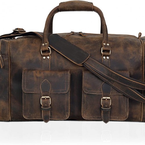 - Large leather duffel bag for men and women handmade with Genuine leather and canvas lining by expert craftsmen working with leather for decades.