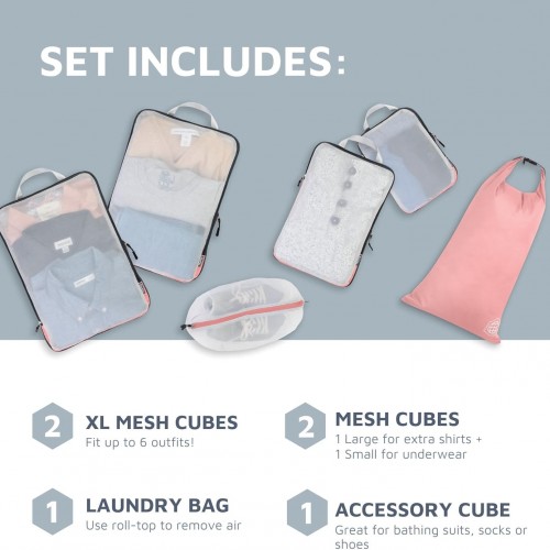 Large Packing Cube Set with See Through Mesh- Compression Packing Cubes Travel Organizers by TRIPPED Travel Gear (Dusty Rose)