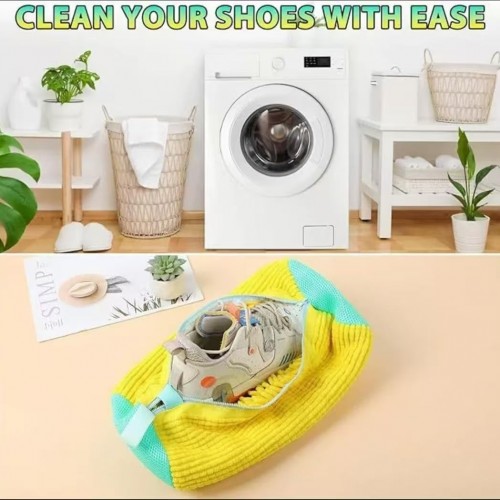 Laundry Shoe Bags for Washing Machine,4Pcs Shoe Washing Bag Shoe Laundry Bag for Washer and Dryer Reusable Shoe Washing Bags Shoe Washing Machine Bag (Yellow-4Pcs)
