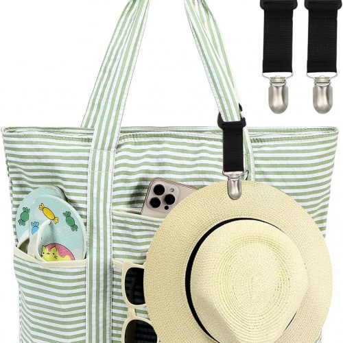 LEDAOU Beach Bag Waterproof Sandproof Women Tote Bag Pool Bag with Zipper for Gym Grocery Travel with Wet Pocket