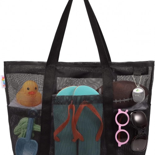LEDAOU Large Beach Tote Bag Women Waterproof Sandproof Zipper Beach Tote Bag for Pool Gym Grocery Travel with Wet Pocket