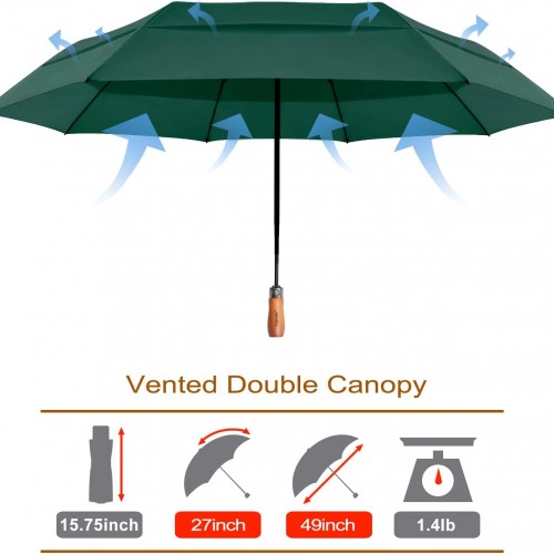 Lejorain Large Folding Golf Umbrella – Compact Mens Umbrellas Travel Rain and Windproof 54inch Collapsible Automatic Open Close Umbrella 210T Teflon Vented Double Canopy