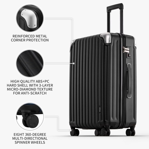 - 8 Rubber-Covered 360-Degree Spinner Wheels: Crafted with a smooth and ergonomic aluminum telescoping handle for effortless mobility