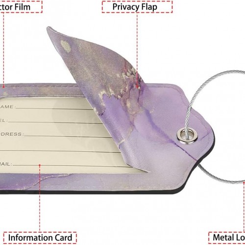 Light Purple Marble Luggage Tag Personalized Luggage Tags for Suitcases,Leather Bag Tags for Backpacks Handbag with Name ID Label Travel Essentials Baggage Tags 2 Pack