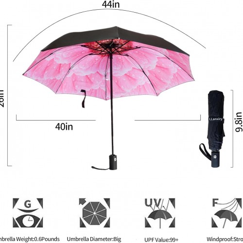 LLanxiry Compact Travel Umbrella, Mini Windproof Umbrellas for Rain & Sun, Small Lightweight Outdoor UV Umbrella, Portable Folding Umbrellas for Travel
