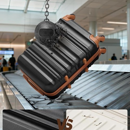 LONG VACATION Carry On Luggage Sets 3 Piece 20 Inch Suitcase Set, ABS+PC Hardshell Lightweight Travel Luggage with Spinner Wheels & YKK Zipper TSA Lock (20 INCH (BP/TB), BLACK-BROWN)
