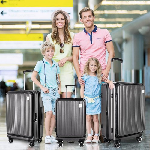 Luggage Sets 3 Piece, ABS Lightweight 20in/24in/28in Luggage, Expandable Carry On Suitcase Set with TSA Lock & Double Wheels, Front Open Hardshell Luggage Sets (Grey)
