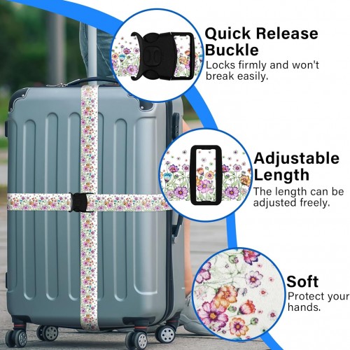 - [THOUGHTFUL DESIGN]: Adjustable+Portable+Lightweight+Sturdy Buckle.The adjustable luggage strap is also equipped with a quick release buckle, which can protect your suitcase and facilitate customs personnel to open and inspect it, without worrying about the luggage strap being cut off.The luggage strap is lightweight, very portable, and very convenient to use