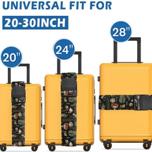Luggage Straps for Suitcases Travel Belt Accessories, Cute Suitcase Strap, Adjustable Luggage Belt Strap, Heavy Duty with Quick-Release Buckle Luggage Strap Boho Mushrooms