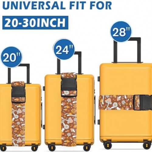 Luggage Straps for Suitcases Travel Belt Accessories, Cute Suitcase Strap, Adjustable Luggage Belt Strap, Heavy Duty with Quick-Release Buckle Luggage Strap Cute Boho Mushrooms