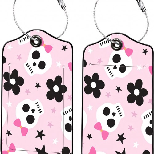 Luggage Tags for Suitcase Black Cats 2 PCS Leather Travel Luggage Tag with Stainless Steel Loop Name ID Label Privacy Cover for Women Men Travel