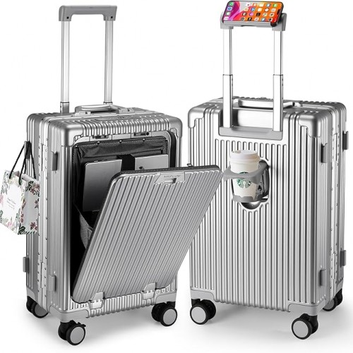 - Aluminum Frame + 100% PC:One-piece molded aluminum frame for deformation resistance and reinforcement; 100% PC case, with superior toughness and resilience compared to ABS+PC, providing 360° robust protection for luggage safety.