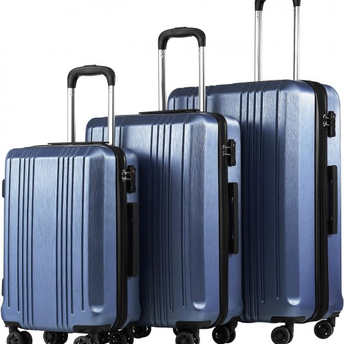 LUGGEX Luggage with Spinner Wheels, Polycarbonate Expandable Hard Shell Suitcase, 3 Piece Set, Navy