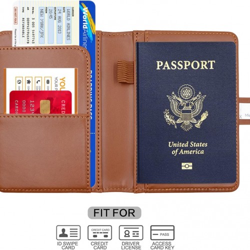 Melsbrinna Premium Leather Passport Holder Covers Case, Waterproof Rfid Blocking Travel Wallet Passport Holder with Pen Holder, Cute Passport Book for Women/Men