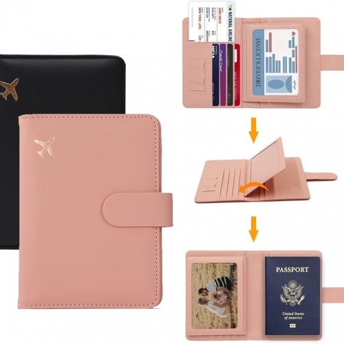 Melsbrinna Rfid Passport Holder for Travel women/Men, Cute Passport Wallet Rfid Blocking Card Slots, Rfid Passport Cover/CaseTravel Wallet, Passport Book Holder (2, Black pink)