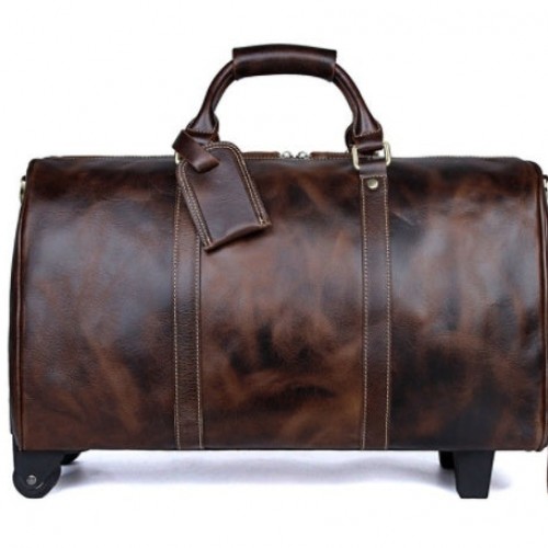 Men’s Leather Hand Travel One Shoulder Crossbody Duffel Bag Brown