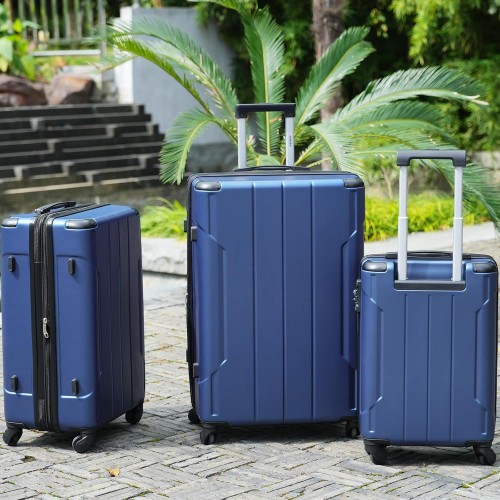 Merax 28 Inch Checked-Large Luggage with Wheels Aluminum Alloy Corner Hard Shell Suitcase TSA Luggage Suitcases for Travel Woman Men(Blue)