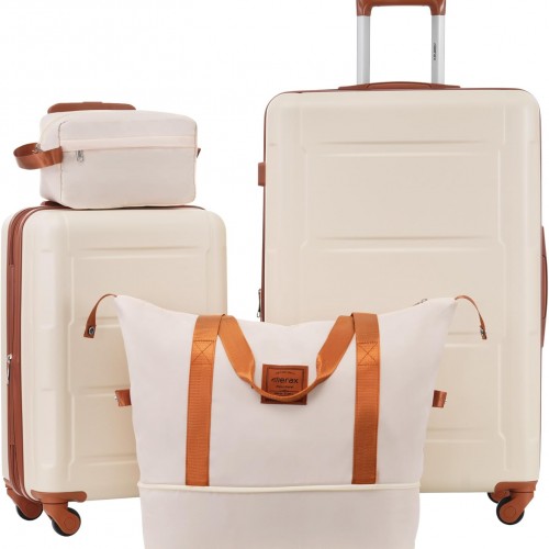 Merax Luggage Sets Front Opening, 2 Piece Hardshell Suitcase with Spinner Wheels and Bags,Lightweight Carry on Luggage with USB Port,20+24,Pink