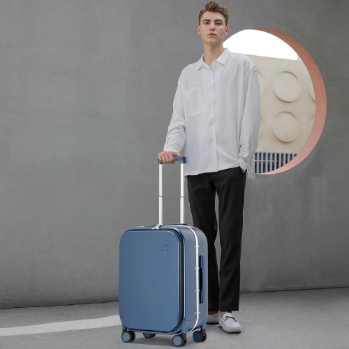 mixi Carry On Luggage, 20” Suitcase with Front Laptop Pocket, Travel Rolling Luggage Aluminum Frame PC Hardside with Spinner Wheels & TSA Lock and Cover – Sapphire Blue