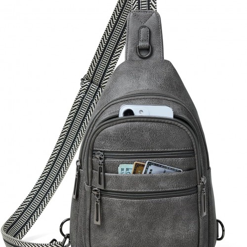 mixi Sling Bag Men Backpack Unisex One Shoulder Bag Hiking Travel Backpack Crossbody with USB Port for Men Women Versatile Casual Daypack-17 inch,Gery