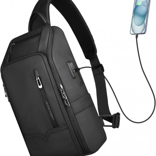mixi Sling Bag Men Backpack Unisex One Shoulder Bag Hiking Travel Backpack Crossbody with USB Port for Men Women Versatile Casual Daypack-20 inch,Black