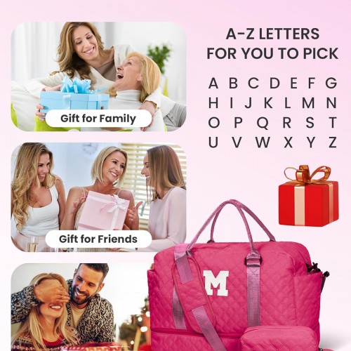 Monogrammed Gifts for Woman, Stuff for Teen Girls-Initial Travel Bag with Shoe Compartment, Weekender Bag, Monogram Overnight Bag for Women, Letter Travel Bag with Makeup Bag (Letter C)